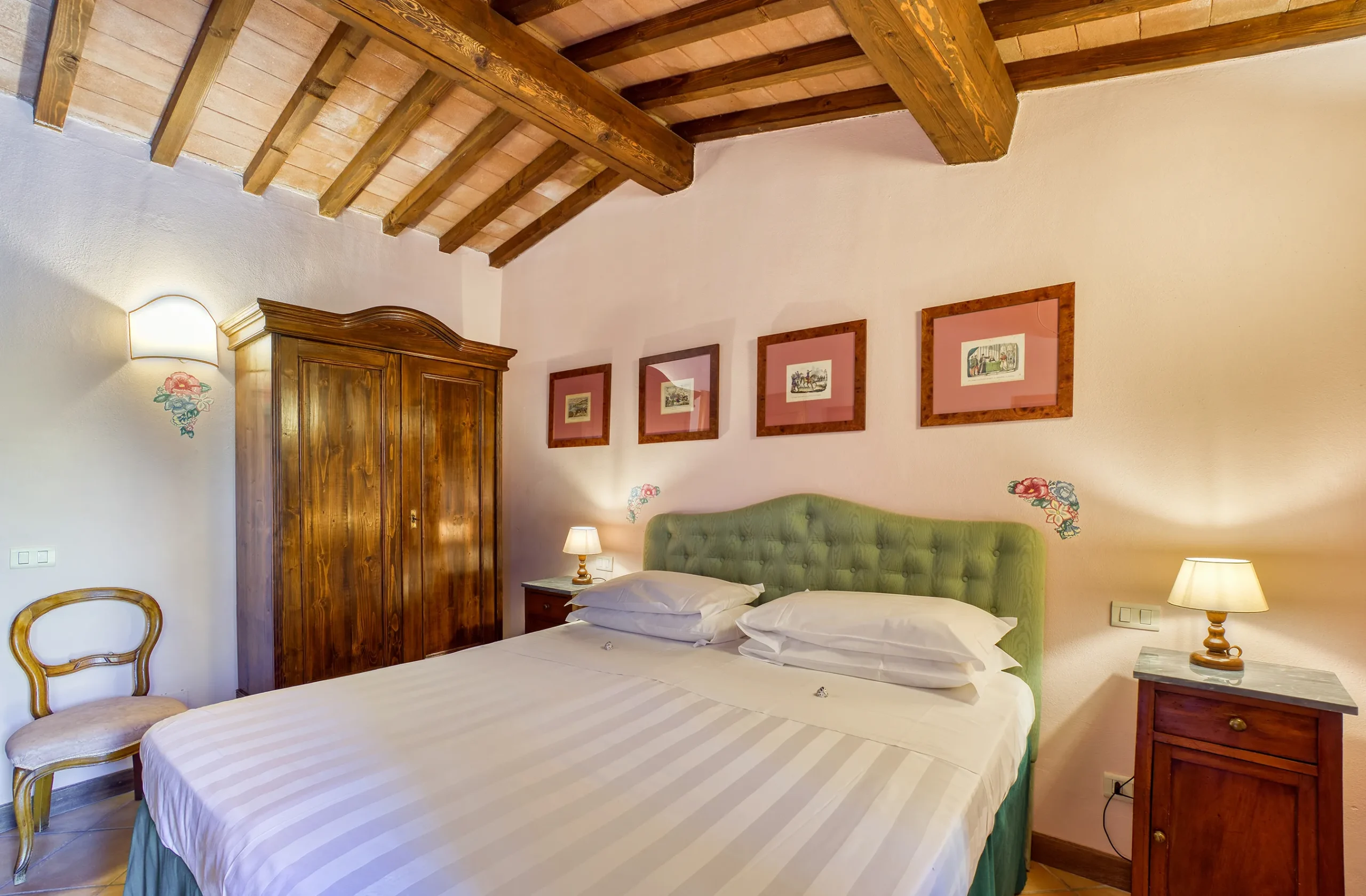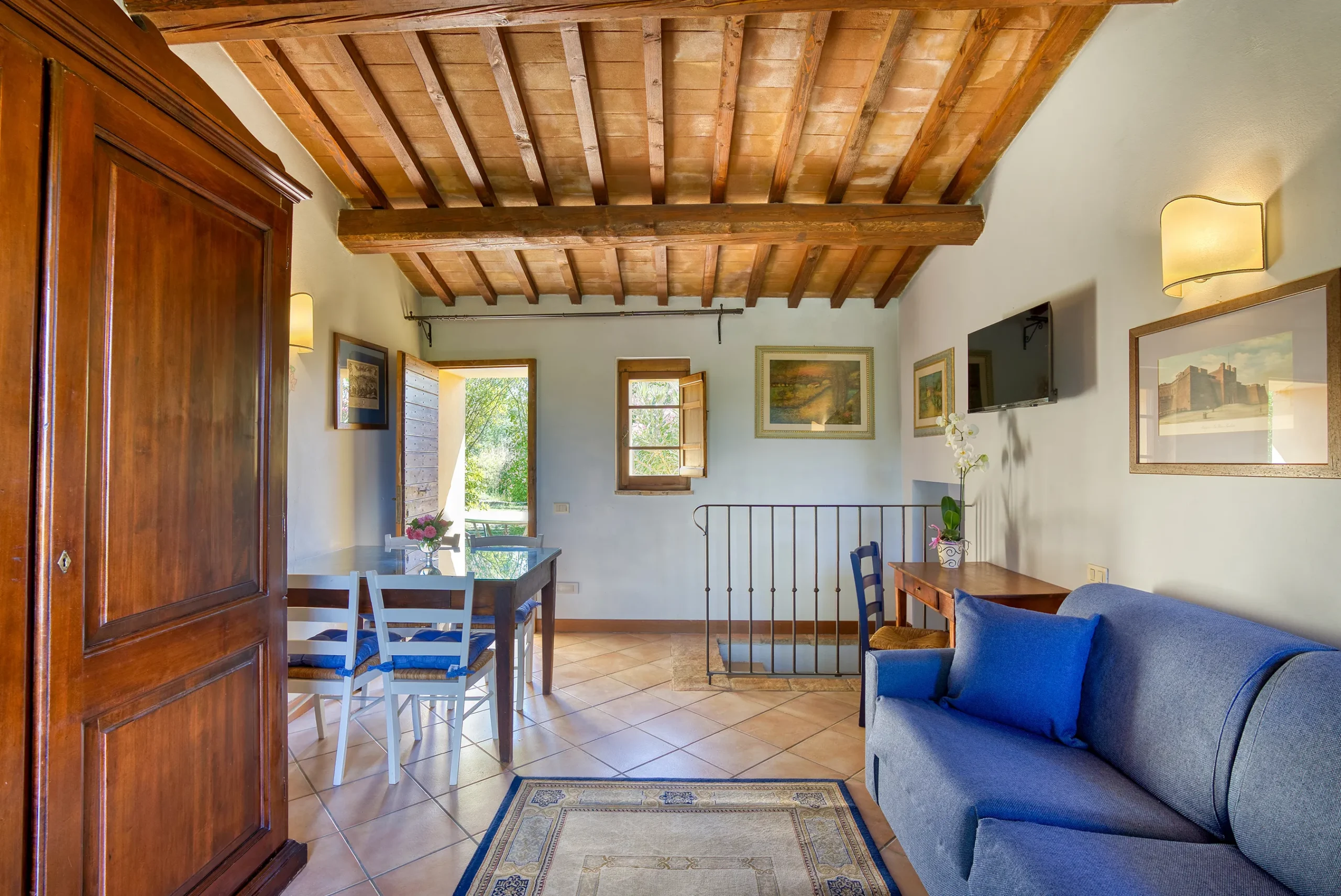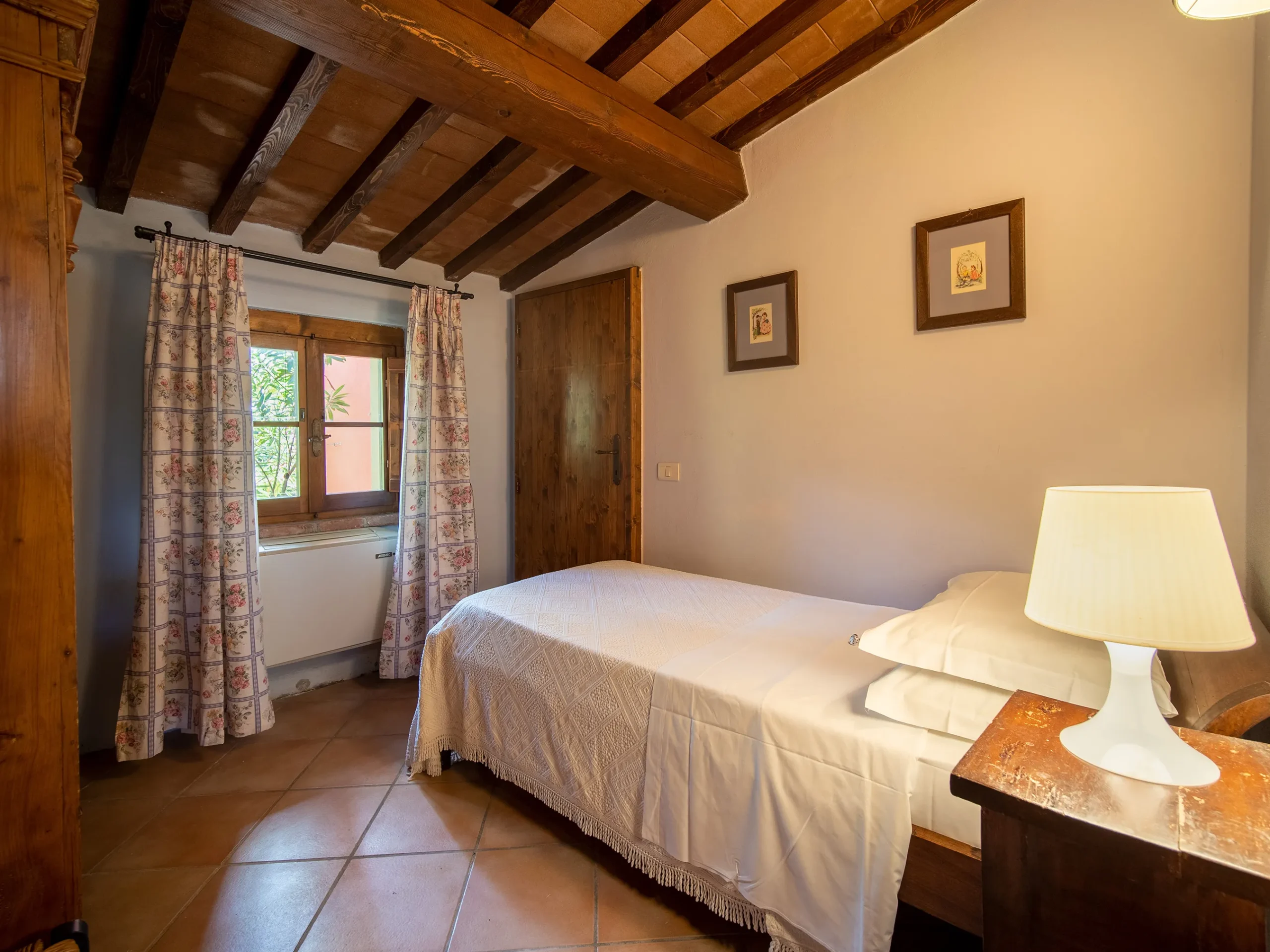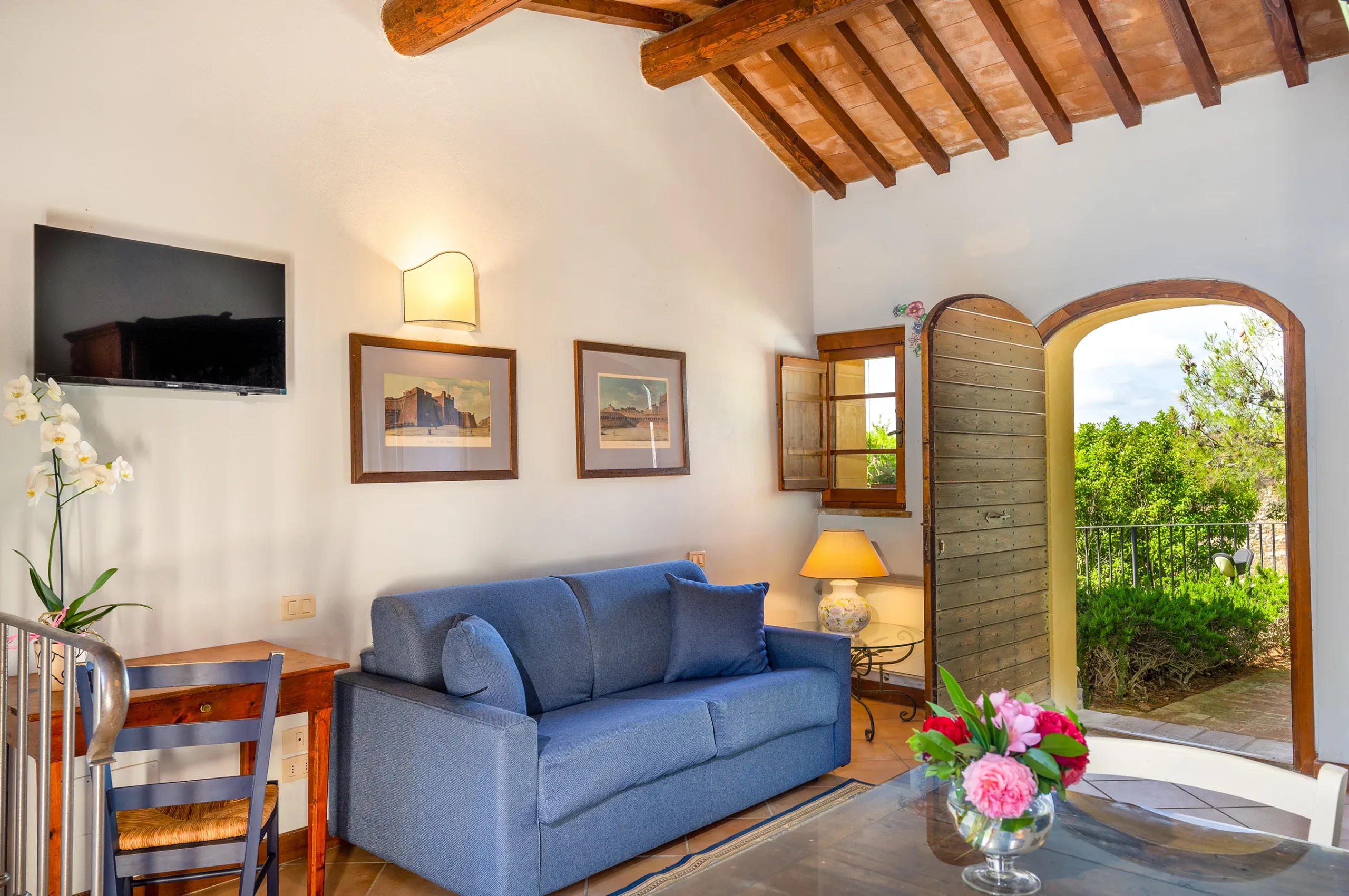 Step outside into your private garden, complete with a traditional brick barbecue and a beautiful Deruta ceramic table, perfect for al fresco dining.