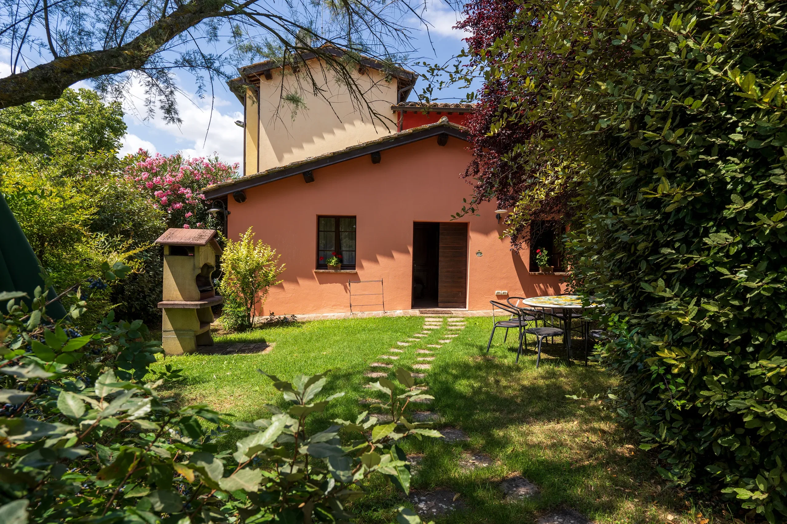The apartment has an independent garden with barbecue and ceramic table made according to the ancient tradition of Deruta majolica.