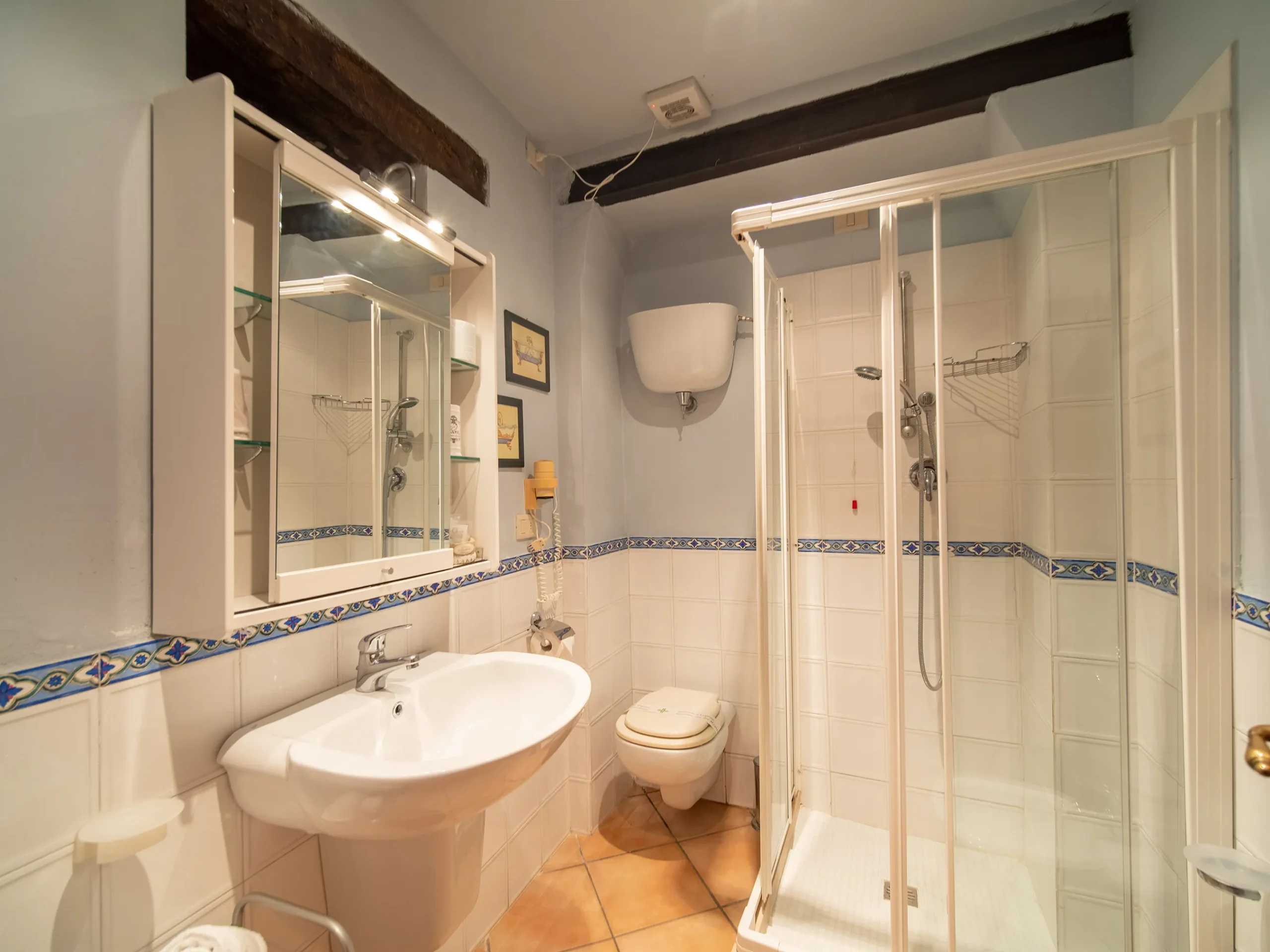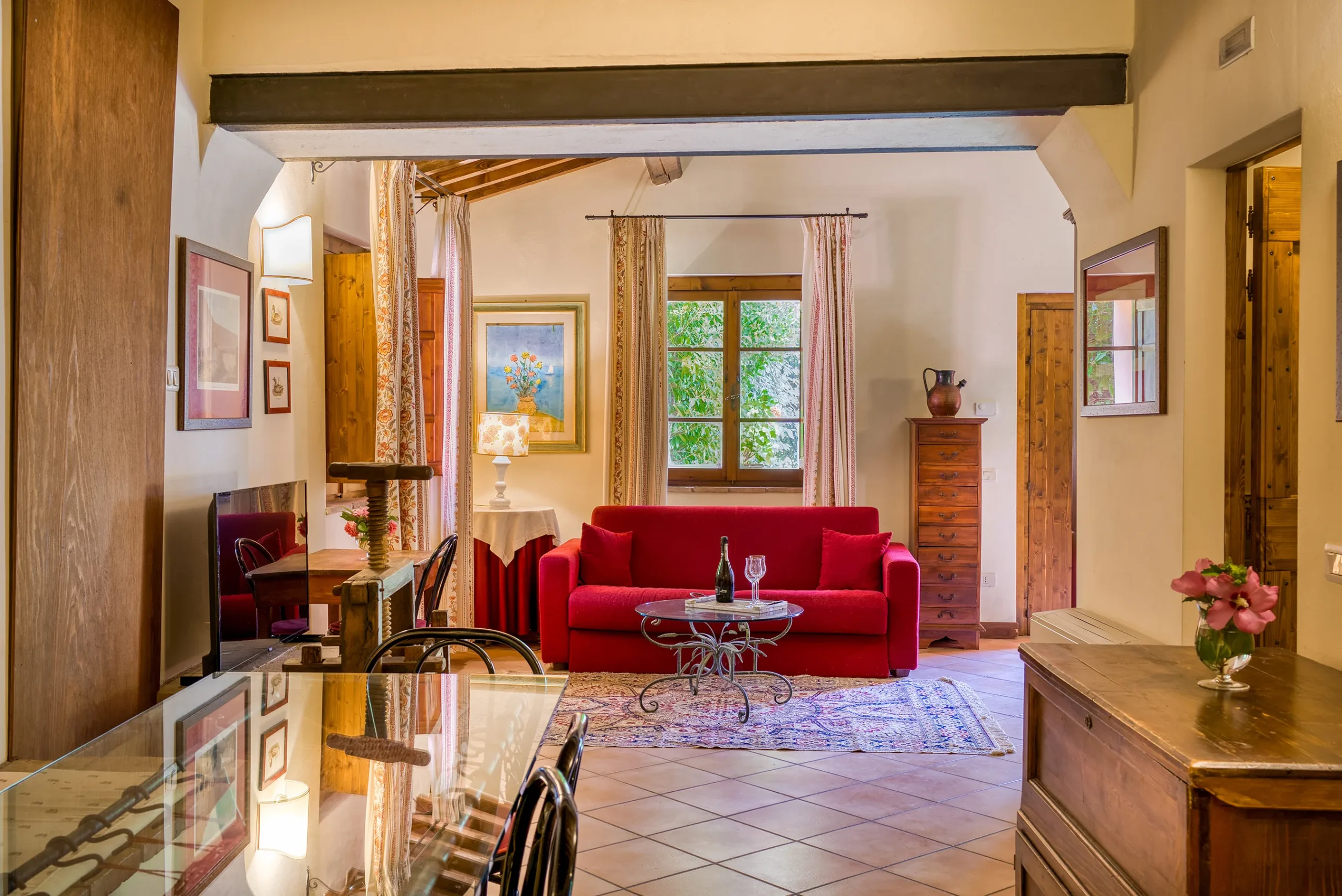 The apartment is located on the ground floor and is the largest, as it has two double bedrooms with two bathrooms, a large living room, all furnished with handmade furniture of the late ‘800.