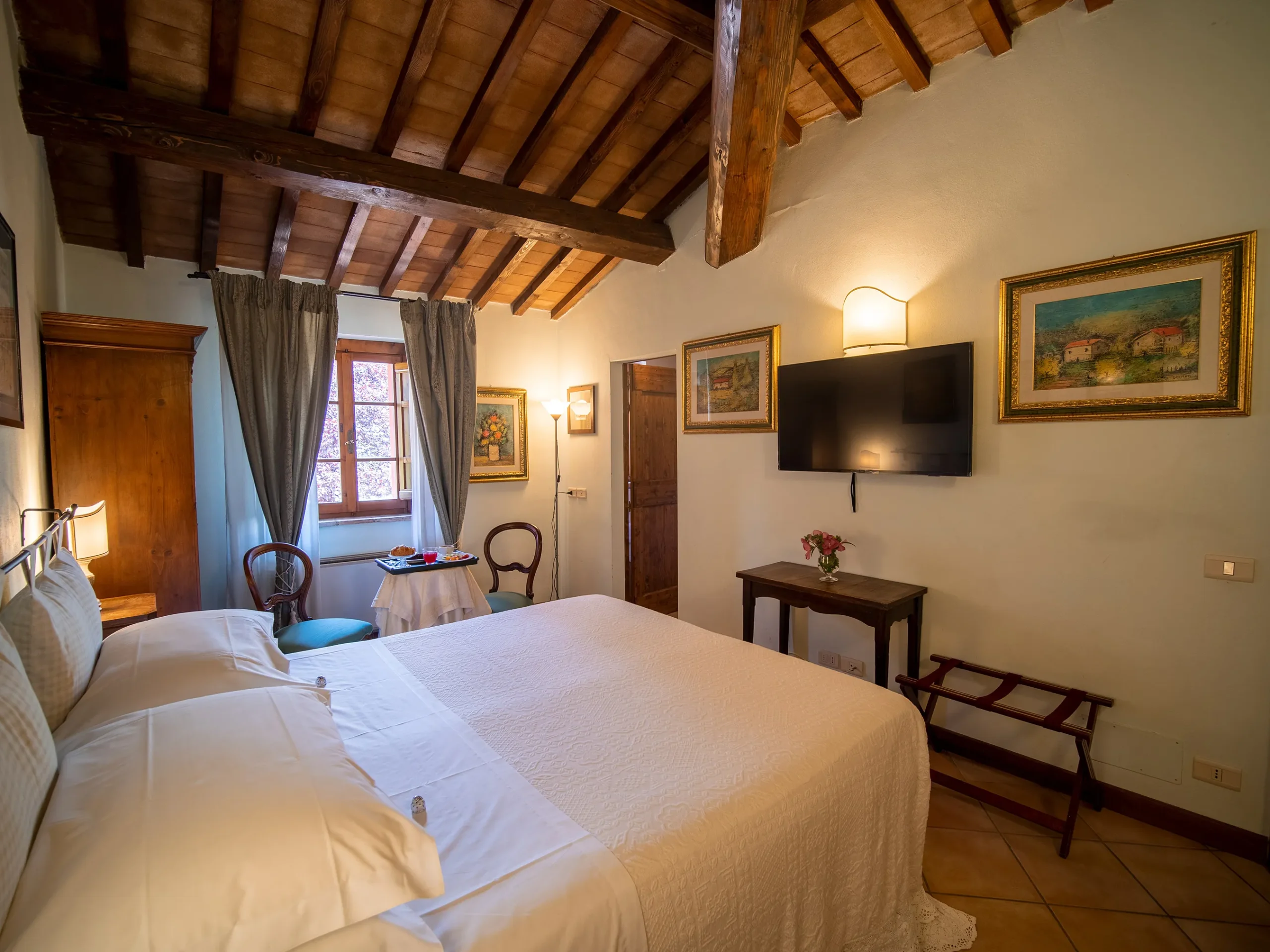 Located on the upper floor of the building, the room is finely furnished with late 19th century style furniture. Spacious and bright, has a kettle and a selection of tea and herbal teas available to our guests. It can be configured as a double or twin room with the possibility of adding a third bed.